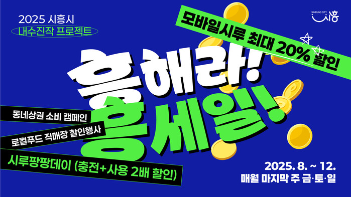 시흥시에 따르면, '흥해라 흥세일'은 시흥시만의 특색을 담은 민생 안정화 대책이자 민관이 함께하는 소비 축제로, 기간은 8월부터 12월까지 매달 마지막 주 금·토·일요일이며, 총 투입 예산은 16억 3000만 원이다.