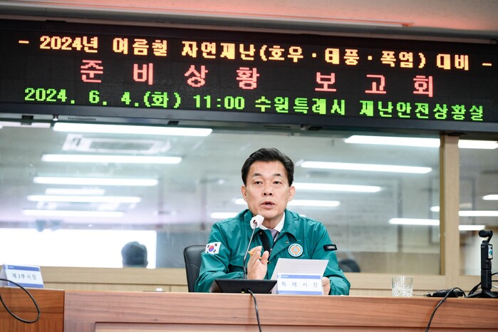 [수원=로컬라이프] 조준영 기자 = 이재준 수원특례시장은 4일, 본격적인 여름을 앞두고 장마와 폭염, 태풍 등 자연재난 대비 태세를 다잡았다고 말했다.