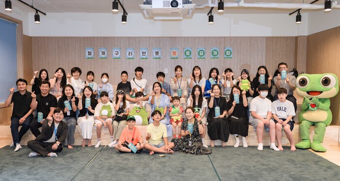 사진/청개구리 연못 프로그램 참석자들이 기념사진을 촬영하고 있다.(사진제공=수원시)