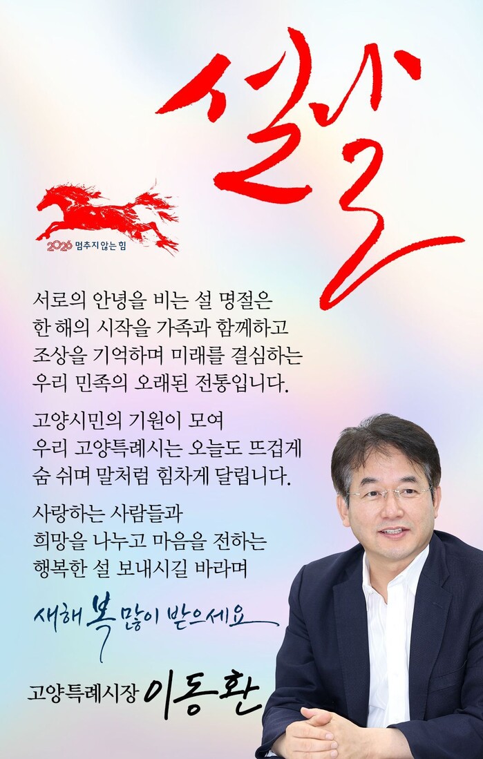 [고양=로컬라이프] 송준형 기자 = 이동환 고양특례시장은 16일, 자신의 페이스북을 통해 서로의 안녕을 비는 설 명절은 한 해의 시작을 가족과 함께하고 조상을 기억하며 미래를 결심하는 우리 민족의 오래된 전통이라고 말했다.