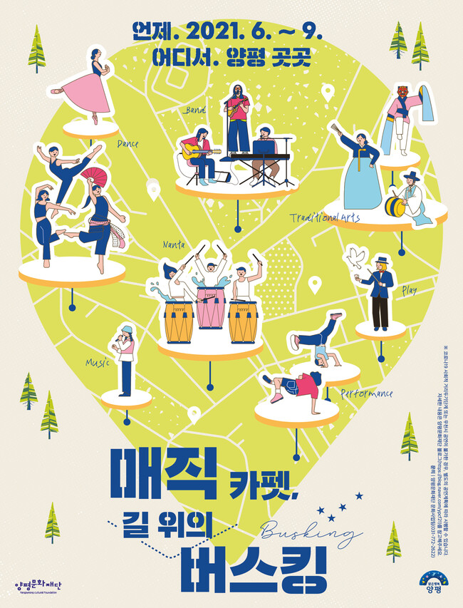 (재)양평문화재단(이사장 양원모)이 주관하는 이번 공연은 기존 양평시장 던킨도너츠 맞은편의 라온광장에서 와글와글 음악회로 운영하던 문화공연사업을 코로나 펜데믹 상황에 맞는 지역밀착형 버스킹 공연으로 진행하는 것이다.
