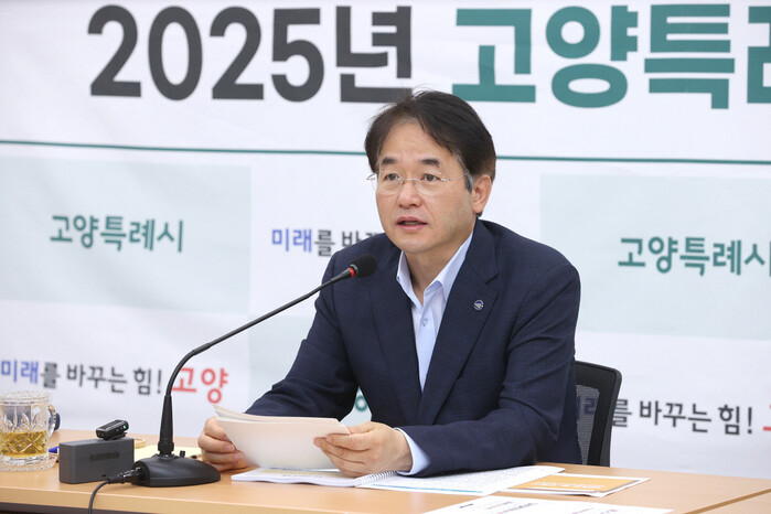 한편, 이날 회의에 앞서 이 시장은 시를 상징하는 ‘고양시 배지’를 간부들에게 직접 전달하는 시간을 가졌다. 통합을 의미하는 원형 안에 시 지형을 담고 슬로건을 표기해 고양시의 정체성과 비전을 상징적으로 표현한다. 이 배지는 올해 신규 공직자들에게도 배부될 예정이며 시는 앞으로 이 디자인을 활용해 마그넷 등 관광 기념품으로 판매할 계획이다.