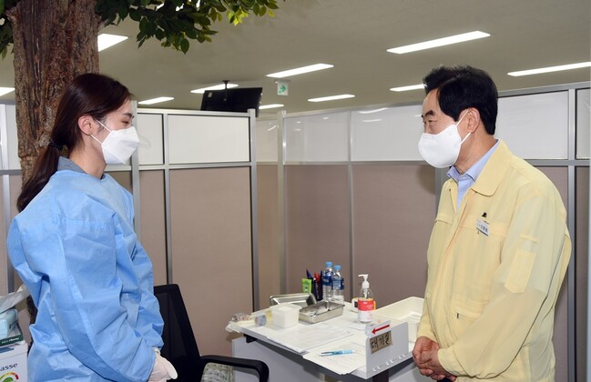 안병용 의정부시장은 8월 2일 백신예방접종센터와 임시선별진료소를 방문해 현장 운영상황을 점검하고 관계자를 격려했다.