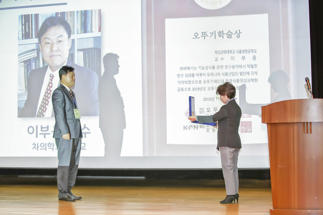 이번 오뚜기 학술상 시상식에는 기능성식품 관련 연구분야에서 탁월한 연구성과를 이뤄 국내 식품산업 발전에 크게 기여한 공을 인정받은 차의과대학교 식품생명공학과 이부용 교수가 수상의 영광을 안았다.