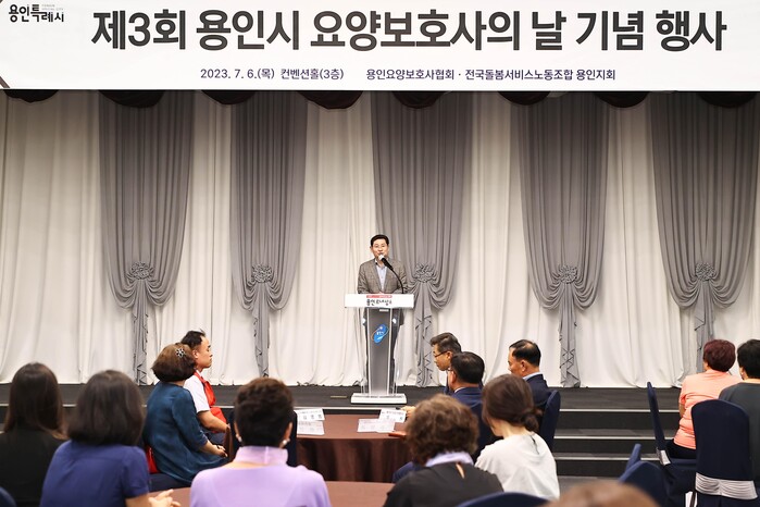 ‘제3회 용인특례시 요양보호사의 날’ 기념행사가 6일 시청 컨벤션홀에서 열렸다.(사진제공=용인시)