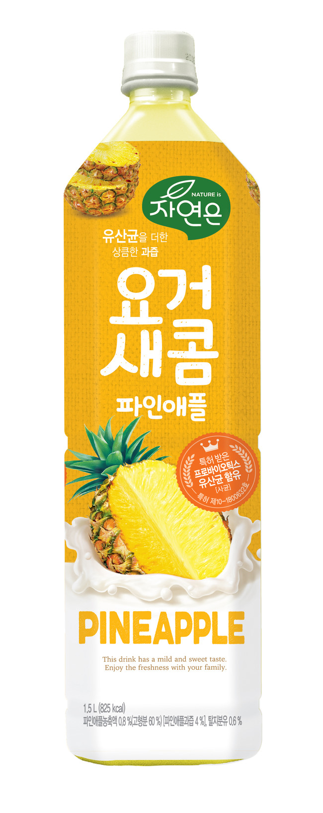 신제품 ‘자연은 요거새콤 파인애플’은 파인애플의 새콤하고 달콤한 맛이 유산균과 조화롭게 어우러진 과즙 음료다.