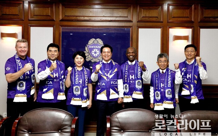 | ▲ 최대호 안양시장(가운데)이 안양방문 외빈들과 기념촬영을 하고 있다. (사진출처=최대호 페이스북) |
