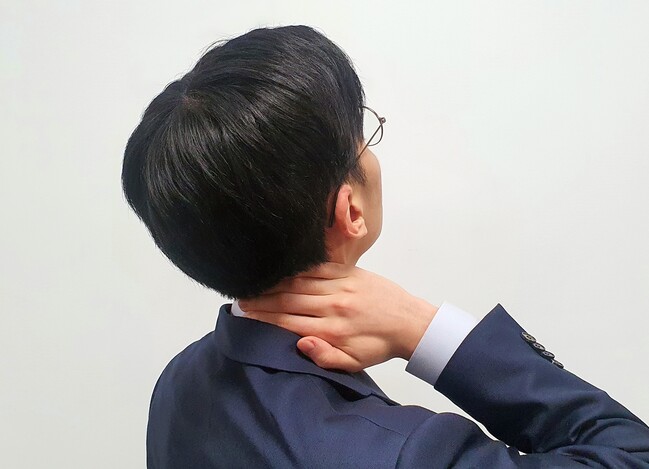 사진/한 직장인이 목통증을 호소하고 있다(자생한방병원 제공)
