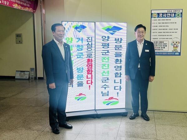 [양평=로컬라이프] 송준형 기자 = 전진선 양평군수는 23일, 지난해 11월 우호교류 협약을 체결한 거창군을 방문해 상호 우호를 다지는 시간을 가졌다.
