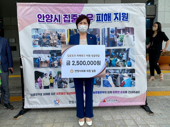 이와 관련해 최병일 안양시의회 의장은 이날 자신의 페이스북을 통해 지난주부터 지속적으로 진행해 온 현장 봉사활동과 함께 금일 이렇게 뜻 깊은 자리에 안양시의회 의원님들과 작은 정성을 하나하나 모아 250만원의 성금으로 힘을 보탰다고 밝혔다.