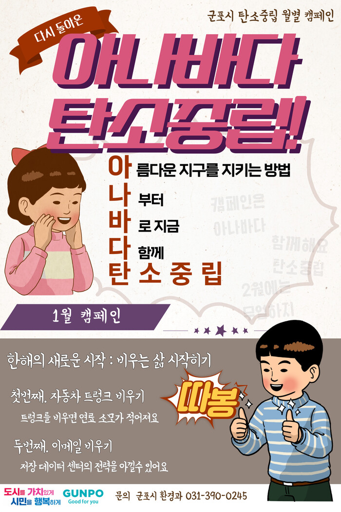 군포시가 시민과 함께 만드는 탄소중립 도시 실현을 위하여 2023년도 탄소중립 연중 캠페인 ‘아나바다 탄소중립’을 실시한다고 밝혔다.
