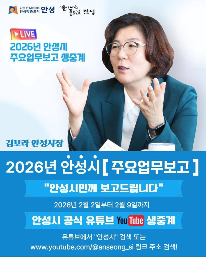 또한 시민들에게도 시가 하고 있는 일을 생생하게 알리는 기회도 될 것으로 생각한다며, 많은 분들이 보고 계시다고 생각하니 더 많이 준비하고 긴장도 됩니다만, 이러면서 안성시 행정도 발전해갈 것이라고 덧붙였다.