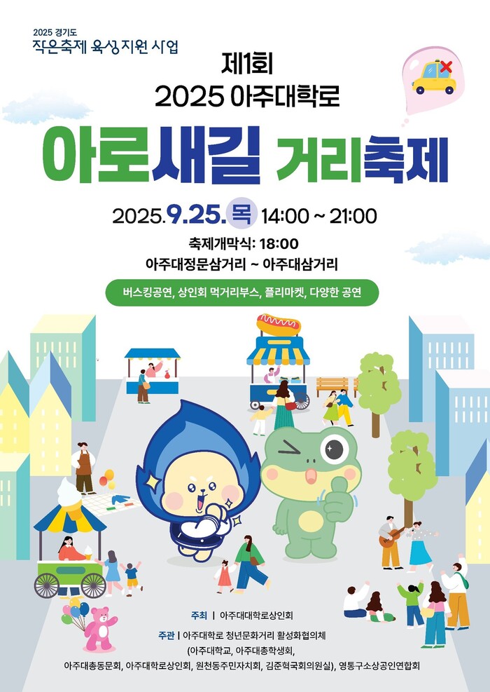 이와 관련해 최종현 경기도의회 더불어민주당 대표의원은 지난해부터 아주대 본부, 총학생회, 총동문회, 지역 상인회, 원천동 행정복지센터와 주민자치회, 통장협의회, 그리고 김준혁 의원실까지 힘을 모아 만들어낸 대한민국 최초의 대학로형 차 없는 거리축제라고 밝혔다.