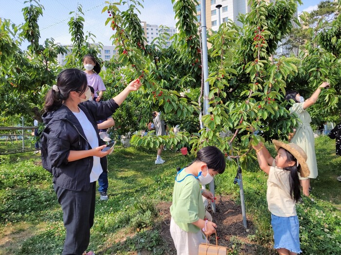 사진/수원시 과수공원에서 체리체험을 하고 있는 어린이들.(사진제공=수원시)