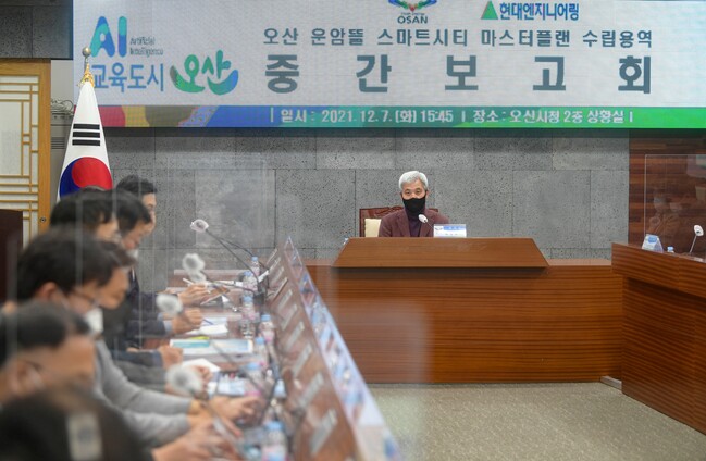 오산시(시장 곽상욱)는 지난 7일 오산시청 상황실에서 오산 운암뜰 스마트시티 마스터플랜 수립 용역 중간보고회를 개최했다고 밝혔다. 이날 보고회에는 곽상욱 오산시장을 비롯한 관계부서 공무원과 오산 운암뜰 스마트시티 마스터플랜 수립을 추진하고 있는 현대엔지니어링 관계자 등 20여명이 참석한 가운데 오산 운암뜰 스마트시티 마스터플랜 수립 용역 중간점검을 위한 자리로 심도깊은 논의를 나눴다.