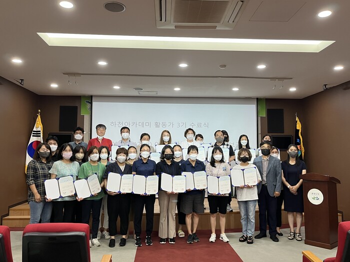 오산시(시장 이권재)는 2022년 하천 아카데미 3기: 오산천 생태활동가 양성과정의 수료식을 12일 오산환경사업소 1층 홍보관에서 진행했다고 밝혔다.