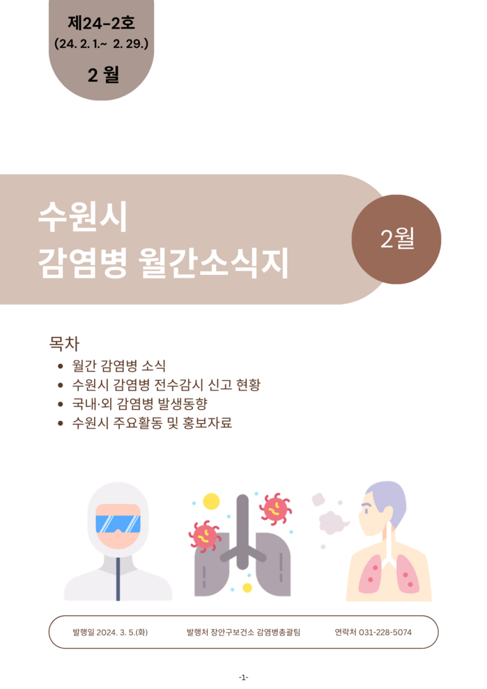 수원시(시장 이재준)가 감염병을 예방하고, 효과적으로 관리하기 위해 매달 감염병 월간소식지를 발간한다.