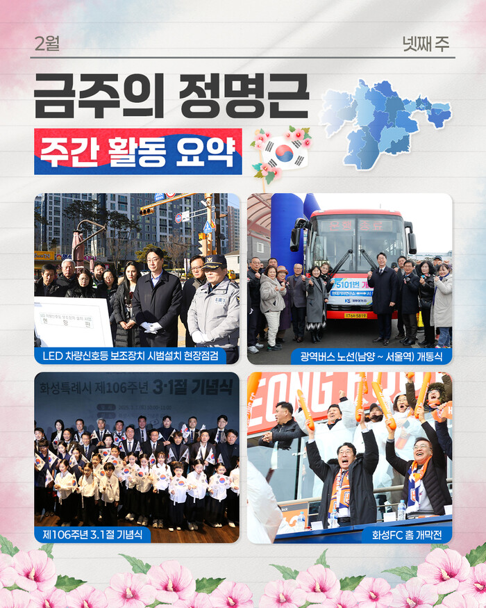 이어 자신의 페이스북을 통해 3.1절 기념식부터 화성FC 홈 개막전 등 주말까지 시민 여러분과 함께했던 이번 주 금주의 정명근이라며, 위 사진과 같이 전했다.