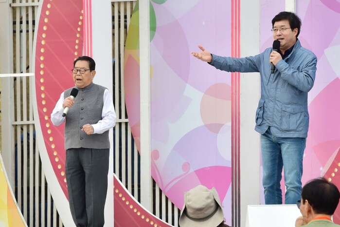 염 전 수원시장은 우리 수원시도 예외가 아니었다며, 2016년에 오셨을 때에는 저도 무대에 올라 우리 아름다운 수원을 자랑했었는데, 2019년에는 특별히 ‘수원시 승격 70주년 기념 전국노래자랑’으로 우리 수원을 찾아오셔서 시민들과 함께 신바람 나는 무대를 만들어 주시기도 했다며, 저는 그런 송해 선생님에게 지난 2020년 공로패를 드린 바 있다고 전했다.