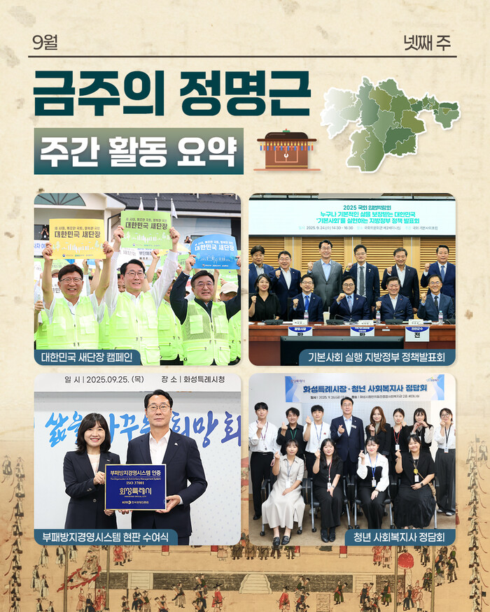 [화성=로컬라이프] 송준형 기자 = 정명근 화성특례시장은 27일, 페이스북을 통해 이번 주는 궁평항에서 열린 대한민국 새단장 캠페인을 시작으로 기본사회 정책 발표를 위한 국회 방문 그리고 화성 곳곳을 누비며 시민 여러분과 대화하고 소통하는 뜻깊은 시간을 보냈다고 밝혔다.