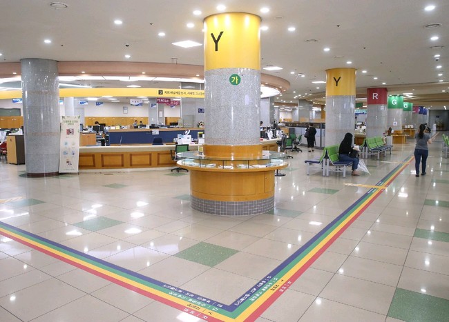 특히, 광명시는 올해 민원인들이 넓은 공간에서 업무를 쉽게 찾을 수 있도록 ‘색깔 따라 찾는 민원실’로 새롭게 단장했다. 유니버셜 디자인(모든 사람을 위한 디자인)을 적용해 민원실 안내표시를 했으며 민원실 기둥 및 바닥을 활용해 빨강, 노랑, 파랑, 초록 색상에 따라 민원 창구를 쉽게 구분할 수 있게 만들었다.