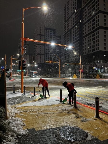 그러면서 새벽 제설작업에 함께 힘써주신 각동 통장님들과 자율방재단분들 모두 감사하다고 덧붙였다.