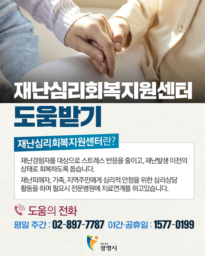 광명시(시장 박승원)는 이태원 사고와 관련하여 정신적 충격 및 심리적 어려움을 겪고 있는 시민이 조기에 극복할 수 있도록 심리지원을 실시한다고 밝혔다.