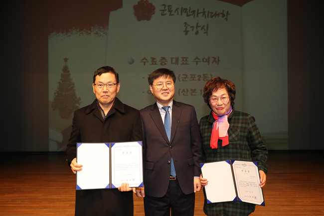 군포시(시장 한대희)는 12일 군포문화예술회관 철쭉홀에서 2018 시민자치대학 제10강 경연과 함께 종강식을 개최했다.