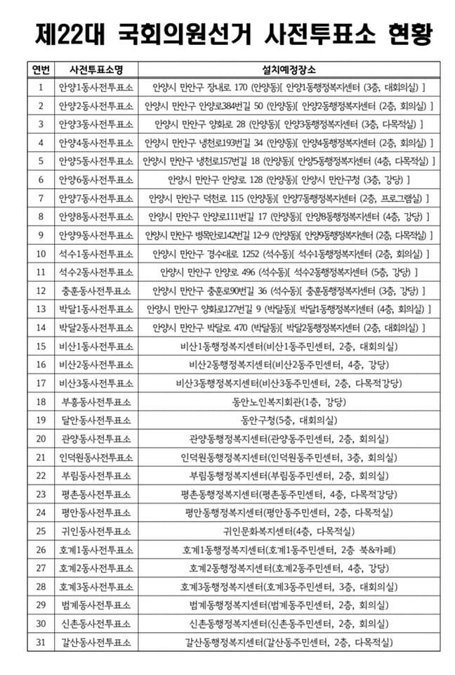 [안양=로컬라이프] 송준형 기자 = 사전투표가 5일, 6일 양일간 안양시 관내 31개 사전투표소에서 진행된다.