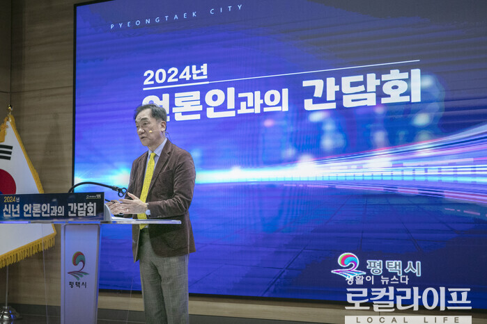 [평택=로컬라이프] 송준형 기자 = 평택시(시장 정장선)가 2024년 갑진년을 맞아 18일 시청 대회의실에서 신년 언론인 간담회를 열어 새해 주요 시정 방향을 밝혔다.