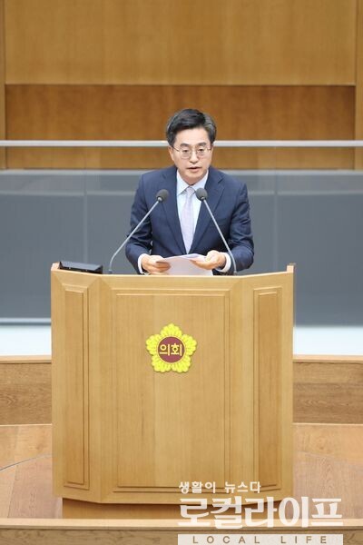 | ▲ 김동연 경기도지사가 도의회에 참석해 도정연설을 하고 있다. (사진출처=김동연 페이스북) |