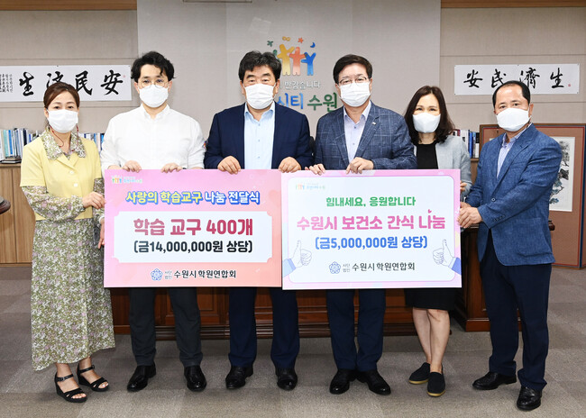 수원시학원연합회가 “저소득층 가정 아이들에게 전달해 달라”며 수원시에 학습교구를 기부했다.