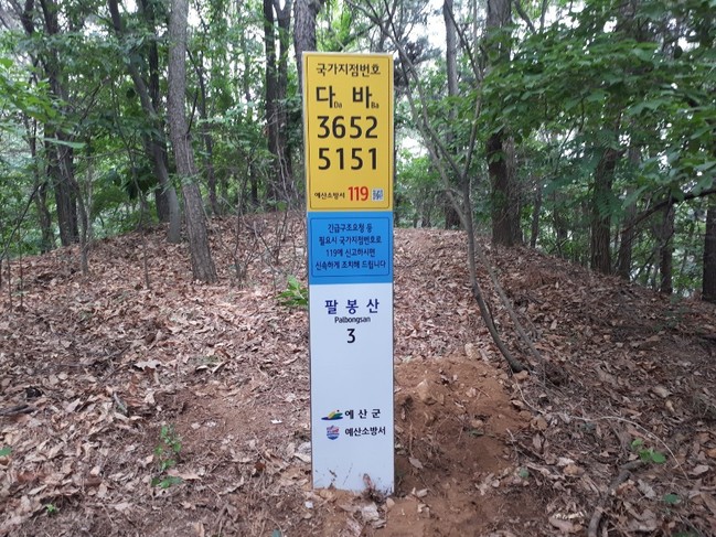 예산군은 수상 익사 및 등산로 조난사고 시 신속한 구조를 위해 예당관광지 낚시터와 응봉면 팔봉산 주요 등산로 등 관내지역에 국가지점번호판 30개소를 설치 완료했다고 지난 3일 밝혔다.