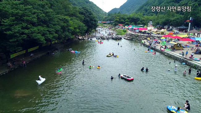 축제장에서 포도와 복숭아를 맛보고 다양한 체험거리를 즐긴 후에 14㎞정도 떨어진 장령산 자연휴양림에 도착하면 시원한 계곡물과 바람을 쐴 수 있다.