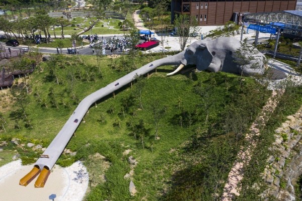 특히 분재공원 안에는 보는 이를 깜짝 놀라게 할 만한 규모의 코끼리 미끄럼틀이 살고 있다. 길이만 47m에 달하는 이 코끼리 미끄럼틀은 타는 순간 지금까지 경험하지 못한 짜릿함을 즐길 수 있다. 뿐만 아니라 국내 최대·최장 규모로써 한국기록원에 등재를 신청해, 이날 한국기록원 김덕원 원장으로부터 군수님과 인증서 수여식을 가졌다.