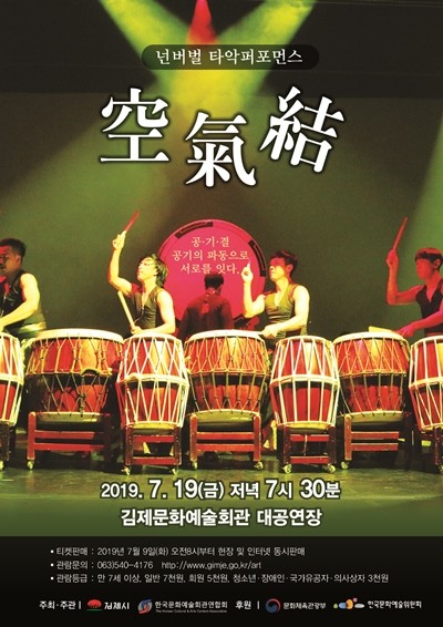 김제문화예술회관에서 오는 19일 오후 7시 30분‘두드림, 공기의 파동으로 서로를 잇다’라는 주제로 넌버벌 타악 퍼포먼스 공연이 펼쳐질 예정이다.