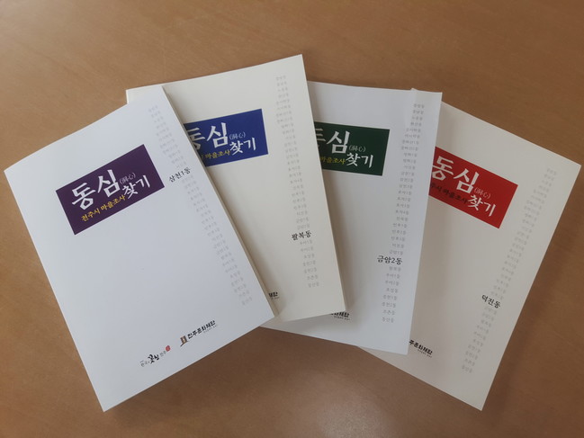 마을조사서는 시와 전주문화재단이 지난 2015년부터 지난해까지 ‘동심찾기’라는 부제를 가지고 각 동의 역사와 생태, 문화자원 등에 대한 문헌조사와 마을에 대한 기억을 구술 채록해 완성한 결과물이다.