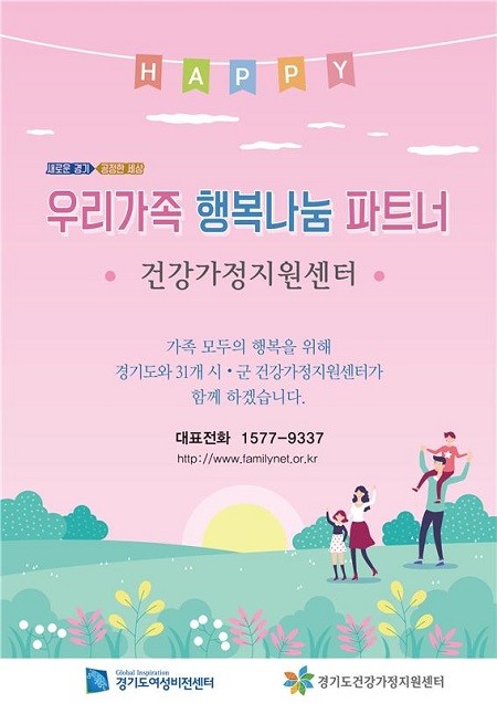 경기도 및 31개 시·군 건강가정지원센터는 7월 한달 간 ‘우리 가족 행복나눔 파트너, 건강가정지원센터’를 공통 슬로건으로 홍보 캠페인을 진행한다고 5일 밝혔다.