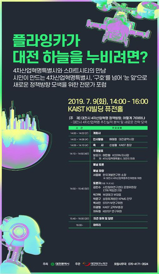 대전시는 오는 9일 오후 2시 한국과학기술원 KI빌딩 퓨전홀에서 ‘대전시 4차산업혁명 정책방향, 어떻게 가야하나’를 주제로 전문가 포럼을 개최한다.