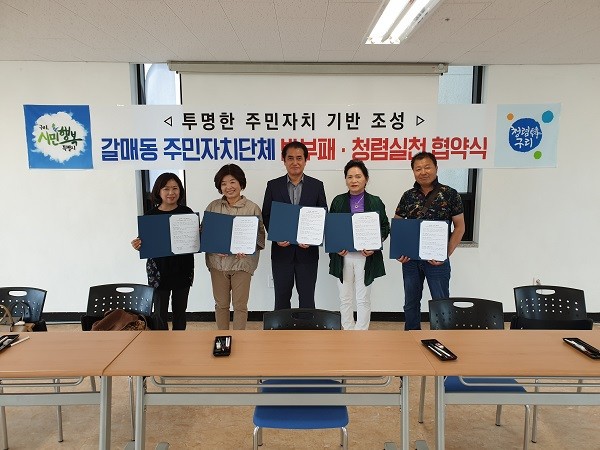 구리시 갈매동은 지난 달 7일과 11일, 21일 관내 주민자치단체와 협력을 통한 지역 사회 청렴 환경 조성을 위해 ‘반부패·청렴실천 협약식’을 가졌다.