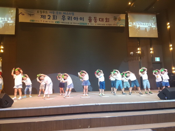 율동대회에서는 과일수수께끼 노래에 맞춰 춤을 춘 세종유치원이 금상을 차지했다. 수박송, 까만콩, 텃밭 꼬마 친구들, 메주가 주렁주렁, 야채삼총사 등 과일과 채소 관련 노래와 함께 과일, 양파, 당근 문양을 꾸미고 춤과 끼를 마음껏 발휘하며 모두가 흥겹게 즐기는 분위기 속에서 성황리에 마무리 됐다.