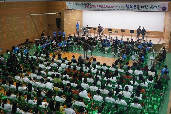 지난 6월 25일부터 29일까지 음악캠프를 위해 우리나라를 방문한 홍콩의 신헤브론중등학교 윈드오케스트라는 25일부터 27일까지 3일간 남문윈드오케스트라 단원들과 우정을 쌓고 음악적 교류를 나누며 지역 주민들에게 아름다운 선물과 같은 공연을 선사했다.