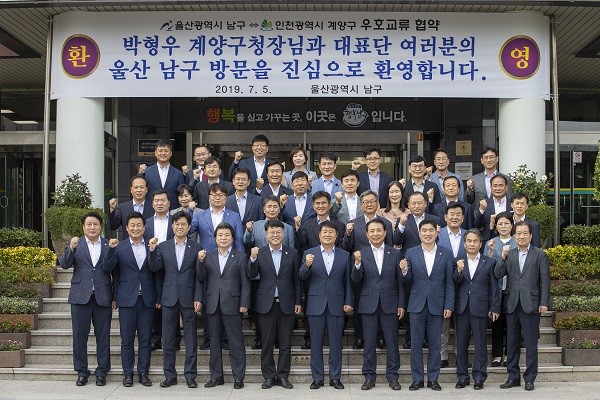 인천 계양구는 울산광역시 남구와 자치단체 간 우호교류 협약을 체결하고 상호 우호 협력을 바탕으로 미래 지향적인 공동의 발전을 도모하기로 했다.