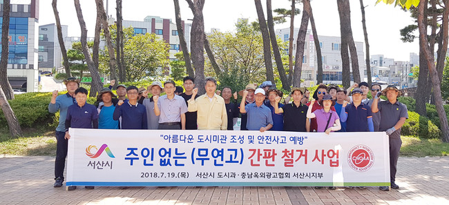 협회에서는 지난 2014년 이후 꾸준히 주인 없는 간판 무상철거를 실시해 지난해까지 170여개의 간판을 철거했으며 서산시에서도 고층 건물의 간판 철거를 위해 5톤 크레인을 지원하고 있다.