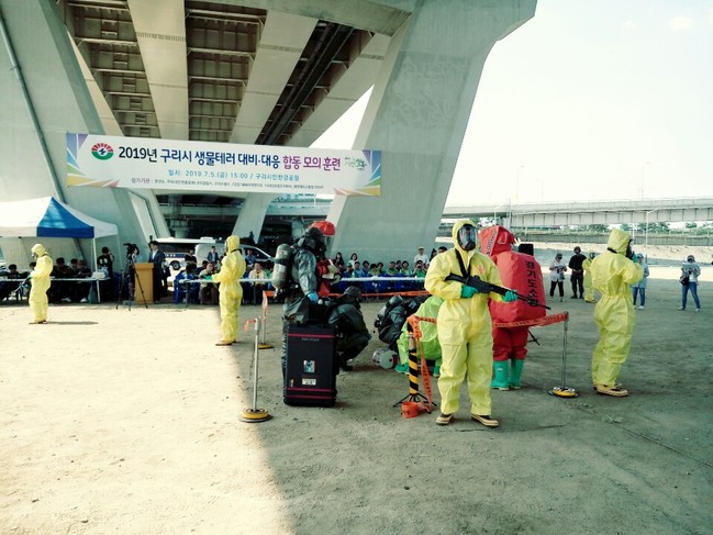 이번 훈련은 생물 테러, 재난 상황 발생에 대비해 유관기관 간 공조 대응 체계를 강화하고 테러에 신속·정확하게 대처하기 위해 마련된 것이다. 이날 훈련에는 구리시를 비롯해 구리경찰서, 구리소방서, 7군단 대테러작전부대, 73사단초동조치부대, 한양대학교병원 DMAT 등 7개 기관 70여 명이 참여했다.