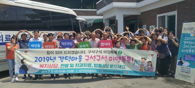 이날 행사에 참여한 지역주민은 “그간 궁금했던 복지서비스를 마을까지 찾아와 자세히 상담해줘서 고맙다”며 “평소 거동이 불편해서 병원 가기 힘들었는데 이번 기회에 치료를 받을 수 있었다”며 감사의 마음을 전했다.
