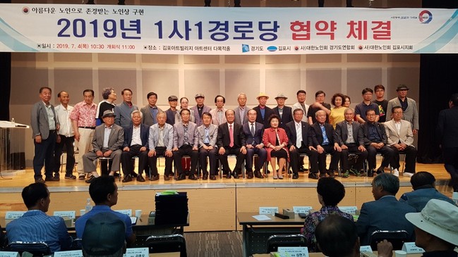 대한노인회 김포시지회는 지난 4일 김포아트빌리지 아트센터에서 각 경로당 회장과 후원업체, 읍면동장이 참석한 가운데 1사 1경로당 협약식을 개최했다.