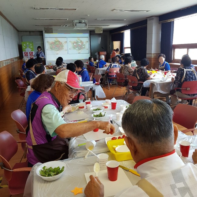 시니어를 위한 푸드테라피 교육은 65세 이상 어르신을 대상으로 근력강화 및 노인 우울증 예방을 위한 신체활동 프로그램과 연계해 올바른 식습관 개선을 통한 비만 등 만성질환 예방관리를 예방하기 위해 색다르게 마련됐다.