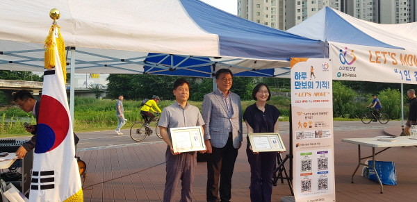 거리공연이 열리는 가운데 250여명의 참석자들이 다함께 안양천변 산책로를 걷는 이벤트가 진행되고 행운권 추첨이 마련되는 등 시종 활기찼다.