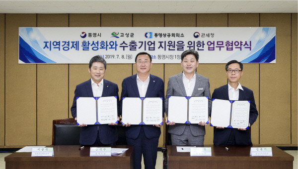 8일 통영시에서 고성군과 경남남부세관, 통영상공회의소와 함께 ‘지역경제 활성화와 수출기업 지원을 위한 업무협약’을 체결했다.